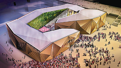 ■加拿大館半包圍的外型,在中央圈起一片開放的公共區域,各種精彩的文藝表演將在這裡上演。 (上海世博局提供)