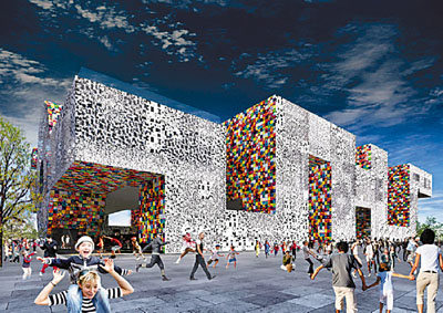 ■韓文特有的幾何特徵,在韓國館的外觀設計中得到了完美的闡釋。