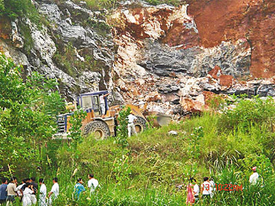 13日上午9時半左右,江西省上栗縣東源鄉民主村發生山體坍塌事故,坍塌體積約600立方米,多名村民被埋,由於崩塌石塊巨大,搜救艱難。 中新社