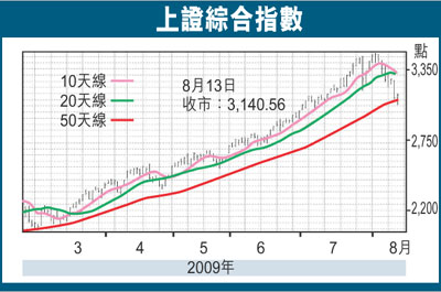 昨日上海股市連續震盪後溫和反彈,金融、地產和資源股倒漲抑制空頭,後市預期仍存分歧。滬綜指以3,112.57點平開,部分搶入反彈資金致短時上衝至3,130點一線,其後很快引出空頭強壓,股指又一次跳水,直至3,060.12點最低位,同時也再創本輪調整新低;市場似預期當天在3,025點附近60天線會有強支撐,主力買盤增加致大盤迅速反彈,早盤翻紅後再經震盪,午盤反彈趨勢確立,尾市探高3,150.36點,最後收報於3,140.56點,較前天上漲27.84點,漲幅為0.89%。上證50指數收於2,528.64點,上漲1.41%,這是這一指數在近期首次大幅跑贏大盤。全天成交1,435億元,較周三減少一成多。交易品種485家上漲,46家平收,382家下跌。