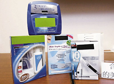 消委會檢視5款市面出售的產品,發現全部美白牙齒產品都以雙語標示使用說明和警告,但只有2款產品有標示漂白劑的濃度,一款含6%過氧化氫,另一款則含6%過氧化碳二胺,有關含過氧化物的美白牙齒產品可在牙醫或藥房購買,售價由200至250元不等。