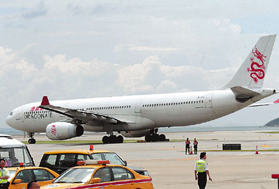 ■港龍航空一班由上海飛往本港的航班,起飛前發現左引擎的頭部整流罩受損,立即返回停機坪。 資料圖片