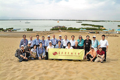 ■中總訪問團成員在寧夏著名景點沙湖合影。