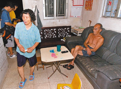 ■發現母親昏迷的婦人與丈夫向記者講述情況。本報記者溫瑞麟 攝