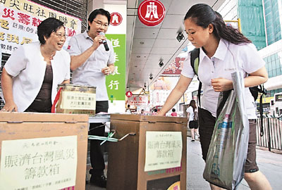 【本報訊】(記者 葉詠儀)本著血濃於水,及發揮「一方有難、八方支援」的精神,九龍社團聯會昨日在九龍區,包括深水鶠B油尖旺、九龍城、土瓜灣、黃大仙及觀塘,設立50個街站,為台灣「八.八風災」中的受災台胞發起賑濟募捐。會長高寶齡表示,事件發生後,收到會員、理事的來電,希望為台灣同胞做點事情,故立即召開常務委員會會議,並向各政府部門申請籌款牌照和召集義工。