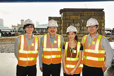 ■曾俊華與3名暑期實習生巡視工地時合照。財爺網誌圖片