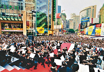 解放碑CBD中央商務區是重慶人氣最旺的商業中心,圖為解放碑廣場音樂會現場