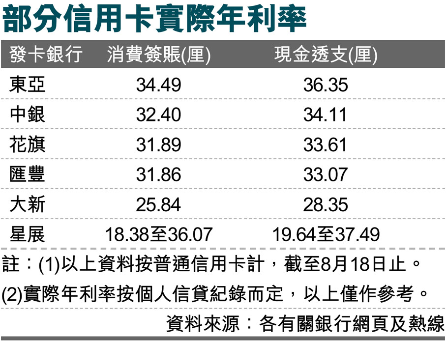 部分信用卡實際年利率 (2009-08-19) (圖)