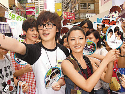 【本報訊】(記者 李慶全)洪卓立、詩雅及陳家樂昨日為合演的新片《很想和你在一起》出席宣傳活動,一同到旺角鬧市派扇,期間吸引近百市民及粉絲圍觀支持。電影公司原定安排三位演員在鬧市兜一圈向途人派扇,卻擔心場面混亂臨時決定取消,最後只匆匆逗留了兩分鐘,演員即被安排入戲院接受訪問。