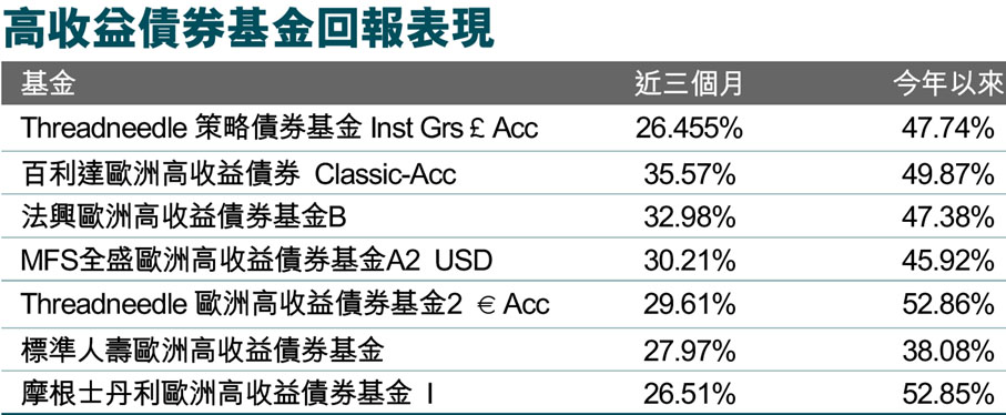 高收益債券基金回報表現 (2009-08-20) (圖)
