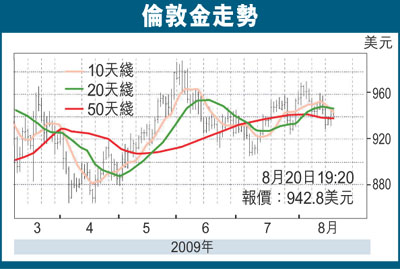 不過,圖表所見,似乎25天平均線仍對金價回升造成一定程度掣肘,目前25天平均線處於947水平,回破此區應見金價之疲態亦明顯得以解除,延伸上漲阻力可看至954及960水平,上周末金價正是受制960水平而回挫,故為短期揚升目標之重要參考。然而,若金價未能回升破25天平均線,則又是另一番景象。於7月初,金價其時就是未能突破25天平均線阻力,隨後兩周回挫至906水平,因此,短期金價若未可踏穩25天平均線之上,則仍見再作深幅調整之風險。即市支持預估先為939及934美元,至於930水平仍是要十分關注之支撐,但尚見一區值得關注的為928水平,一方面為100天平均線位置,另一方面亦是大型三角底部位置。至於7月29日低位925水平,則仍可作一個參考,估計此區亦告失守,金價面臨較大型之調整風險。