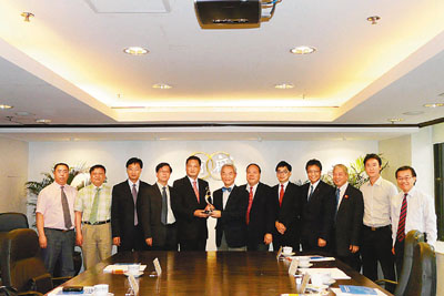 ■廠商會副會長羅富昌(左六)致送紀念品予廣東省開平巿政府常務副巿長梁和平。