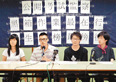 ¡@¡i¥»³ø°T¡j(°OªÌ¡@´^¬üªÚ)·|¦Ò¹L«á¡A¤£¤Ö¹ï¦¨ÁZ¤£º¡·Nªº¦Ò¥Í³£·|¨ì¦Òµû§½n¨DÂЮ֡A±æ¯àÀòµû®Ö§ó¦n¦¨ÁZ¡C¥Ñ¦h¦ì¤¤¤¾Ç¥Í²Õ¦¨ªº¡u¤½¶}¦Ò¸ÕºÊ¹î¡v¡A¤£º¡¦Òµû§½¦bÂШ÷®É¼x¦¬¨C¬ìªñ600¤¸ªº¶O¥Î¡A¥B³W©w¨C¦W¦Ò¥Í¥u¯à³Ì¦h¬d4¥÷¨÷¡A¨îÂШ÷Åv§Q¡A©óFacebook¤Wµo°_©ú¤Ñªº¡u¤Ï¹ï¶Â½c§@·~¡Aª§¨ú¦Ò¥ÍÅv§Q¡v¹C¦æ¡A¾ÚºÙ¤w¦³¬ù180¦W¤ä«ùªÌ³ø¦W°Ñ¥[¡C
