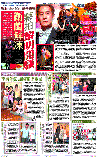 開完騷的Leon當晚又回到香港準備第二日的工作。Leon說:「接下來主要是拍《火龍》,9月份才拍完;然後會到三藩市有其他工作,還要準備唱片。」周末都沒有放假,Leon工作果然搏命。不過他也很知道保持體力,開騷前幾天,他在拍片之餘,也會去游水。「要適當運動,又不能太累,要把握好。」