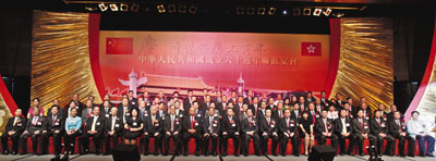 ■香港客屬工商界慶祝國慶賓主合照。本報記者曾慶威 攝