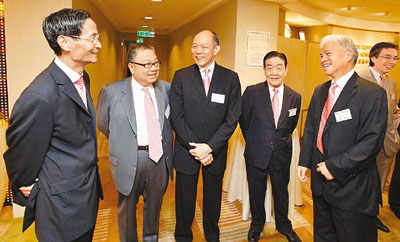 ■黎桂康、陳永棋、霍震寰、唐學元、楊釗輕鬆交談。