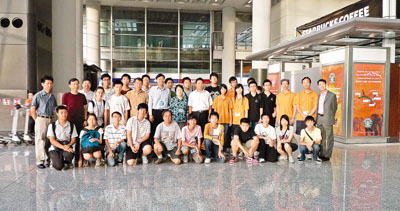 呂新華(右八)特地到機場迎接京津交流團回港師生,他預告將舉行優勝學生頒獎儀式,嘉許勝出學校。 本報記者彭美芳 攝