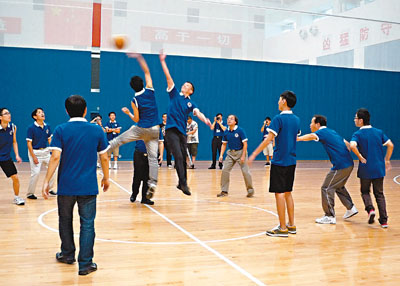訪問國家體育總局訓練局後,學生隊與成人隊(外交公署、教育局、校長及老師組成)比賽籃球。