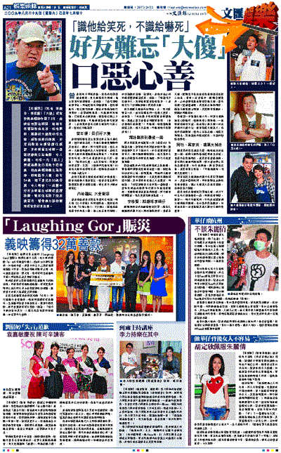 他又透露大傻在內地很紅,三、四天就登台一次,或比全港任何一位藝人更多,志偉說:「內地幾乎每間夜總會都請過佢,表演之後又會落台同觀眾飲酒。(會否因而令他病發?)可能係,佢康復無幾耐就工作,個人又豪氣,可能因而令身體差啦!」