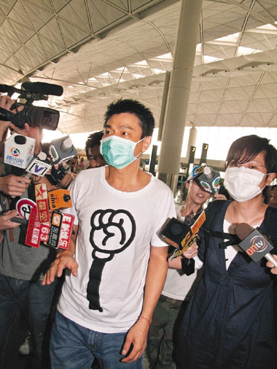 在華仔臨入閘前,記者再追問現時朱麗倩心情如何?是否會結婚?被拍到女兒與爺爺飲茶?華仔一概不回答,便步入閘口,但仍禮貌地回頭向Fans及傳媒揮手道別。