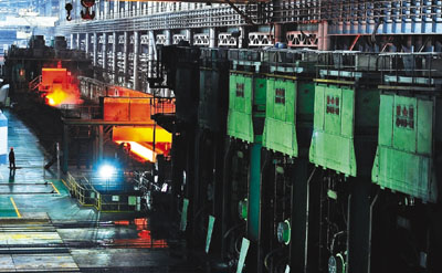 ■鞍鋼第三煉鋼連軋廠2150熱連軋機組的生產場面。如今,鞍鋼已具有年產鋼2,500萬噸的生產能力。