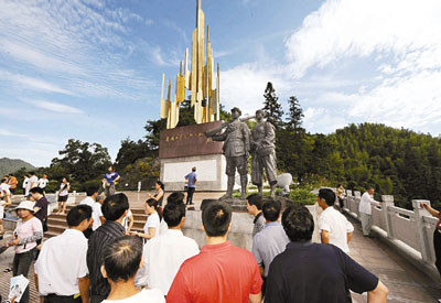 遊客在瞻仰井岡山革命烈士紀念碑。