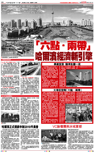今年上半年,哈爾濱市克服金融危機不利影響,經濟增長逆勢而上。在全國15個同類城市中,多項經濟數據增速從隊尾移至前列,成為區域經濟增長的動力源。為了進一步優化生產力空間佈局,統籌規劃,整合資源,創新體制和機制,哈爾濱市正在努力打造以六個政策功能區和松花江、地鐵沿線為重要載體的「六點.兩帶」經濟增長極。