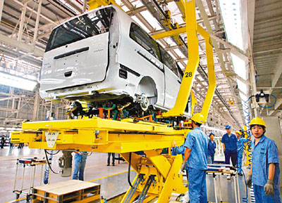 ■福州打造先進製造業基地。圖為戴姆勒位於青口的輕客生產線,戴姆勒項目使福州成為大陸與美、德、日三大汽車工業強國均有合作的唯一投資區域。 王立強 攝