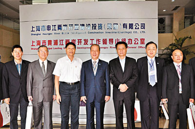 上海申江兩岸開發建設投資集團副董事長兼總裁余力(左三)為同鄉詳解南外灘發展潛力和商機