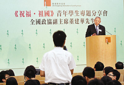 會上不少年輕人聚焦國家的民主發展,董建華重申,不宜把外國逾百年歷史與國家的60年相比,昔日人民「飯都食唔飽」,生存權已經是最大的人權了;走到今天,執政者最重要著眼於社會的和諧發展,施政為民,「你們可能覺得我幫國家講話,但我在英國住了6年,在美國住了9年,始終覺得中國領導人對民情最熟悉,對老百姓最關心。」 ■本報記者 曾少妍