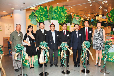 ■余鴻建、吳燕群 、黃錦福、楊偉文、林光如、梁鎮華、任澤明、梁燕華為「綠色印藝」環保展 主持開幕。