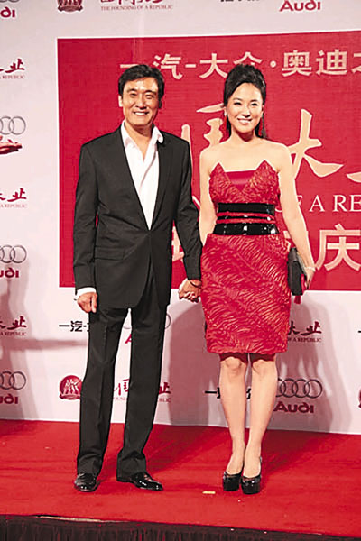 ■梁家輝和沈君傲手拖手一同到場支持《建國大業》。