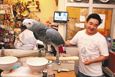 非洲剛果灰鸚鵡非常聰明、口齒伶俐,加上善通人性,是鸚鵡愛好者喜歡飼養的熱門品種之一,牠們一般都有50至60年壽命。在旺角西洋菜街開設鸚鵡店多年的陳文輝(見圖)表示,灰鸚鵡8個月大時,已會說一些簡單的單字,如經訓練,更會說多個字的句子甚至多種語言,十分逗人喜愛。惟灰鸚鵡本在氣候炎熱的非洲生活,因而在本港冬季時,必須在屋內加裝暖管以防凍死。