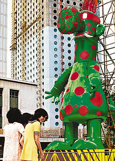 ■新聞處過去不少宣傳「吉祥物」深入人心,圖為1972年放置在中環的「垃圾蟲」宣傳清潔香港。