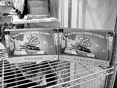 雲南臨滄古佳茶廠為慶祝中華人民共和國成立60周年和豐富人民的茶文化生活,繁榮茶行業,古佳茶廠特推出「慶祝中華人民共和國成立60周年」普洱茶紀念磚。該產品紀念茶精選雲南2009年普洱春茶為原料,秉承傳統工藝精心製作而成。每盒茶都配上獨立的收藏證,只推出5688盒紀念茶,望收藏者倍加惜護。