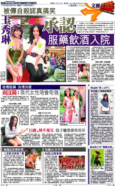 早前王秀琳因被拍到乘坐郭富城的跑車而傳出緋聞,事後王秀琳更高調表示會繼續和城城聯絡,轉頭王秀琳就被指因遭城城嫌棄而自殘入院,發展相當戲劇化。昨日王秀琳看來精神不俗,她表示身體已無恙,又指對有關傳她自殺的新聞感到很搞笑,她解釋入院是因當日她與朋友到日本餐廳慶祝朋友生日,一時忘記自己食了藥而喝了一些日本清酒,以致腸胃出現問題,嘔吐大作並入院。