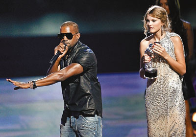 鄉謠小天后Taylor Swift在日前的MTV音樂錄影帶頒獎典禮上領獎時,被Kanye West上台搶咪一事,在網上成為熱話,不少網民批評Kanye太過分。當晚有份出席的女歌手Pink也於交友網站Twitter上寫道:「Kanye West是全世界頭號爛人,可以引述我這句話沒關係。」Pink又指Taylor是一個既可愛又有才華的女孩子,絕對有資格獲獎。CNN電視台也以該事件開通Call-in話題。