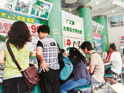 ■廣州旅行社國慶期間內地遊報團人數眾多。本報廣州傳真