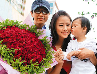 日前,在電視劇《我的醜爹》的大連拍攝現場,女主角翁虹遭遇驚喜。她的老公劉倫浩與女兒突臨片場為翁虹慶祝生日,並送上99朵紅玫瑰與生日蛋糕。面前這突如其來的祝福,令翁虹感動得一時措手不及,半天說不出話。翁虹在驚喜之後心情依舊難平,不斷眺望丈夫和女兒,女兒更主動獻吻,母女果然情深。 ■中新社