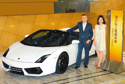 長實地產投資董事黃思聰(左)表示,何文田富甲半山為全港首個分層住宅項目引進「獨立私人電閘車庫」,每個車庫電閘耗資10萬元,讓富豪擺放心愛名車。
