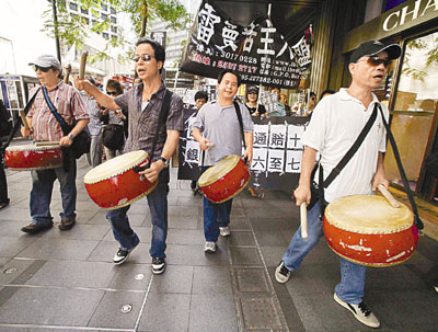 ■昨日有部分迷債苦主到相關銀行外示威。 路透社