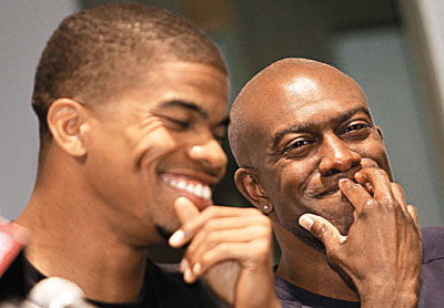 ■阿倫莊遜(右)與查美爾昨出席新聞發佈會。 美聯社