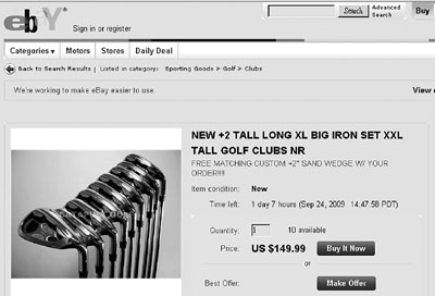 英國用戶在eBay購買到劣質高爾夫球桿,從而揭出最大型的售賣翻版用品集團。圖為eBay網站上銷售高爾夫球桿的網頁。 網上圖片