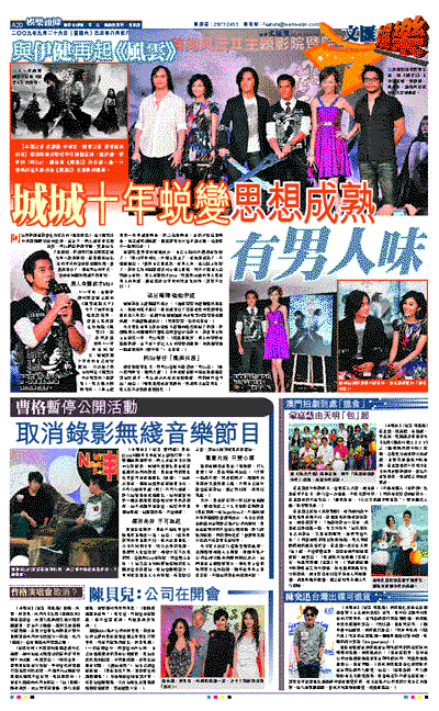 【本報記者 梁靜儀 李望賢、實習記者 謝習盈深圳電】導演彭順和彭發昨午攜郭富城、鄭伊健、蔡卓妍(阿Sa)、唐嫣等《風雲2》的主創人員一行到深圳嘉禾影城為《風雲2》主題影城揭幕。