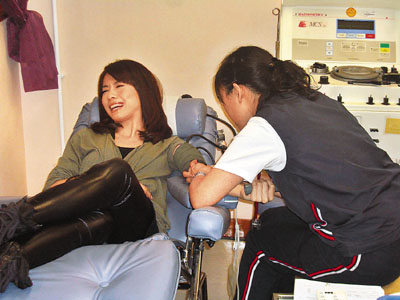 【本報訊】(記者 李慶全)鄧麗欣昨日到香港紅十字會輸血中心捐血,之前她曾患上H1N1甲型流感,已經病癒一個月,所以能夠去捐血,她從醫生處獲知患過流感康復的病人,血液中會多了抗體,可以幫助到其他患流感的病人並作為研究,所以特別應紅十字會之邀前往捐血,她又指自己屬O型血,希望可以幫到更多的病人。而在捐血時,鄧麗欣表現得好緊張,她指上次捐血已是兩年前,她又向來怕血,所以怕看到自己被抽血。