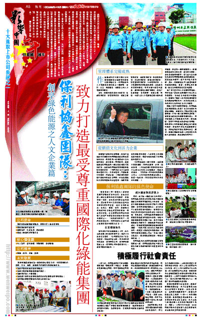 在二零零九年的元旦獻詞中,朱共山提出,集團的目標是成為最受尊重的國際化綠色能源企業。這飽含深意的話語背後,不僅包含了集團在資本市場上的抱負與夢想,更展示了一個企業為承擔社會責任與推動行業進步所勇敢背負的使命與訴求。當綠色夢想在全球迅速覆蓋蔓延,我們有理由相信,「三個力三個金」的保利協鑫將以一個烙有中國標誌的成功民族企業,為全人類共同家園的進步與和諧,貢獻更加巨大的力量。 ■本報記者 安琪