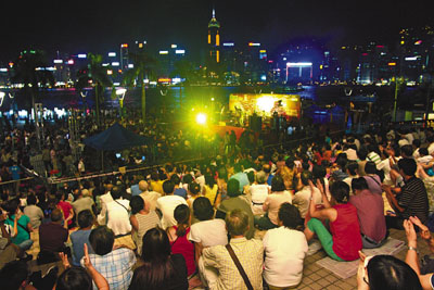 ■由民建聯主辦的「紅色搖滾」音樂會場面熱鬧,吸引大批年輕人參加,同賀國慶。