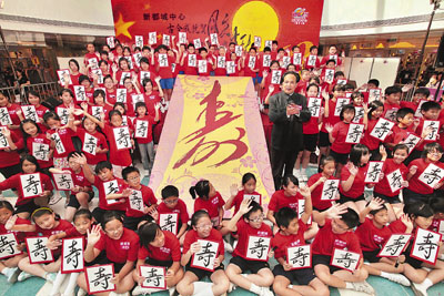 著名特型演員、開國領袖毛澤東扮演者古小月,昨應邀來港,為「古小月毛體書法展覽」主持開幕禮,並與到場的99名兒童以各自臨摹的毛體「壽」字,組成「百壽圖」祝賀建國60周年。古小月是內地著名毛體書法家,曾獲全國毛體書法大賽一等獎,作品除被毛澤東紀念堂等單位收藏外,亦曾送贈予國務院總理溫家寶。