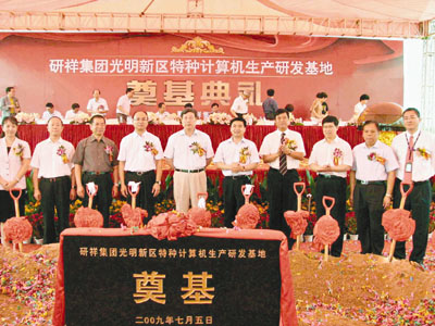 ■今年7月5日,陳志列(右一)在深圳出席研祥的新生產基地奠基儀式,這個斥資10億的生產基地將成為全球特種計算機行業最大的生產研發基地。 本報廣東傳真