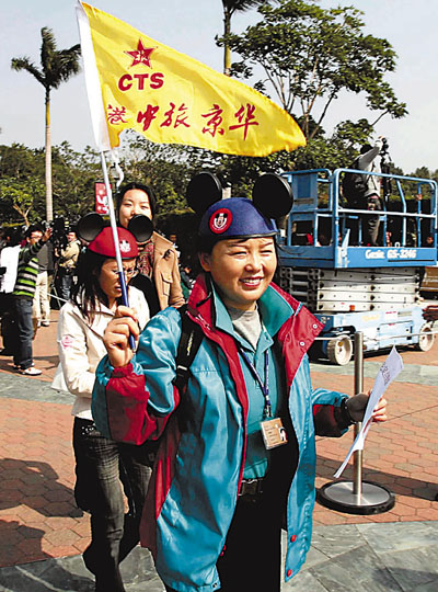 【本報訊】(記者 郝君兒)十一超級黃金周,接待內地團的導遊終擺脫「吊鹽水」的窘局。甲型H1N1流感在港肆虐曾令內地旅客卻步,不少內地團導遊一連數個月「無工開」,導遊總工會副會長盧懷明表示,剛過去的暑假雖為傳統旅遊旺季,但訪港的內地家庭客銳減,導遊嚴重開工不足,部分同業惟有暫時轉任司機或打散工;隨著疫情穩定,加上內地一連8天國慶假,家庭客重臨,旅行社已通知導遊暫停休假,導遊再度忙起來。